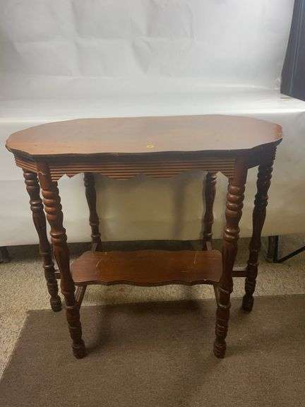 Solid wood oval shaped 6 leg table. 28in tall 32in long and 19in deep