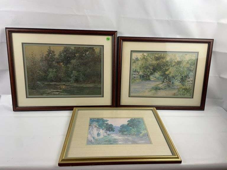 Three beautiful prints by Paul Sawyier. 2 wooden frames and one golden frame.