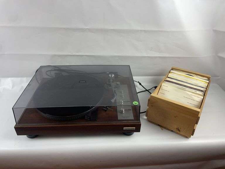 Hitachi record player and small crate of 45’s