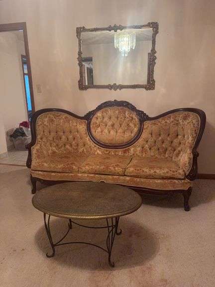 Victorian style couch, table and mirror
