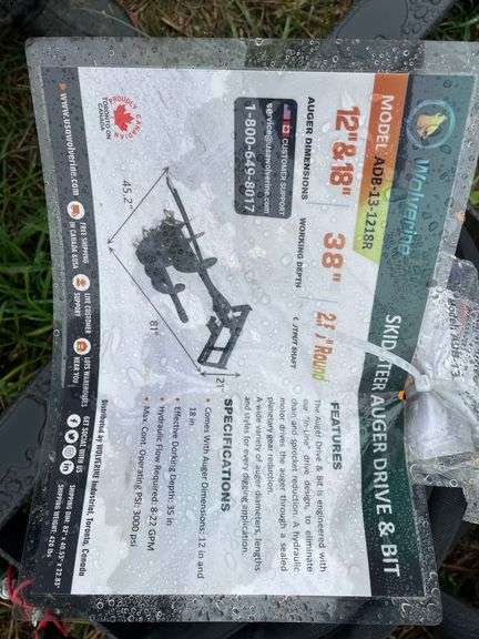 LOT 165 - Wolverine skid steer auger w/ 2 bits