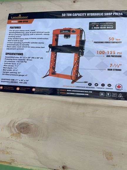 LOT 309 - LandHonor 50 Ton Capacity Hydraulic Shop Press