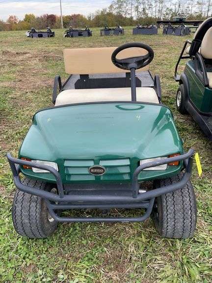 2005 EZGO MPT1200 Green Gas powered with flat bed and lights.
